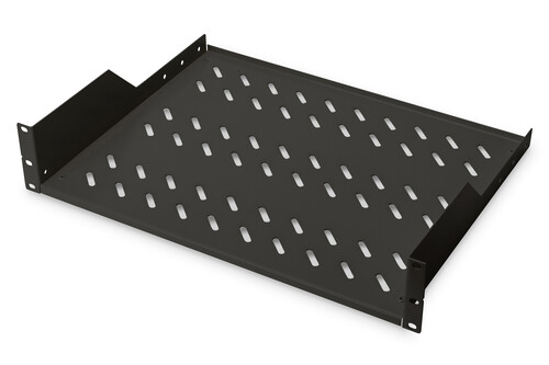 DIGITUS | 2U Fixed Shelf for Racks | DN-19 TRAY-2-SW | Perfect for storage of components which are not 483 mm (19”) suitable. Slim design which takes space of 2 height units. Easy and quick to mount o